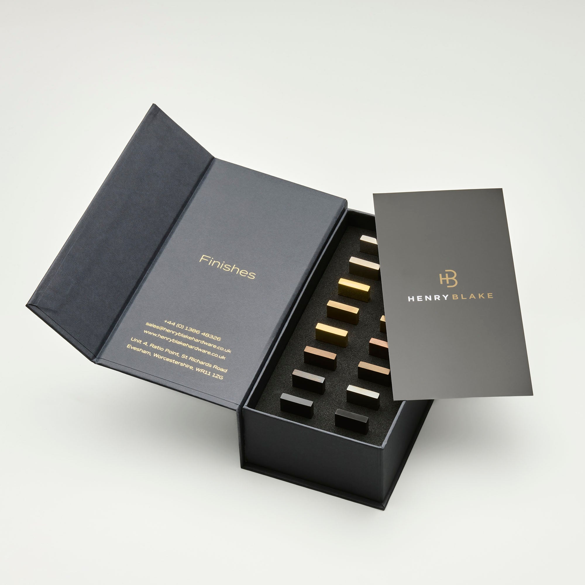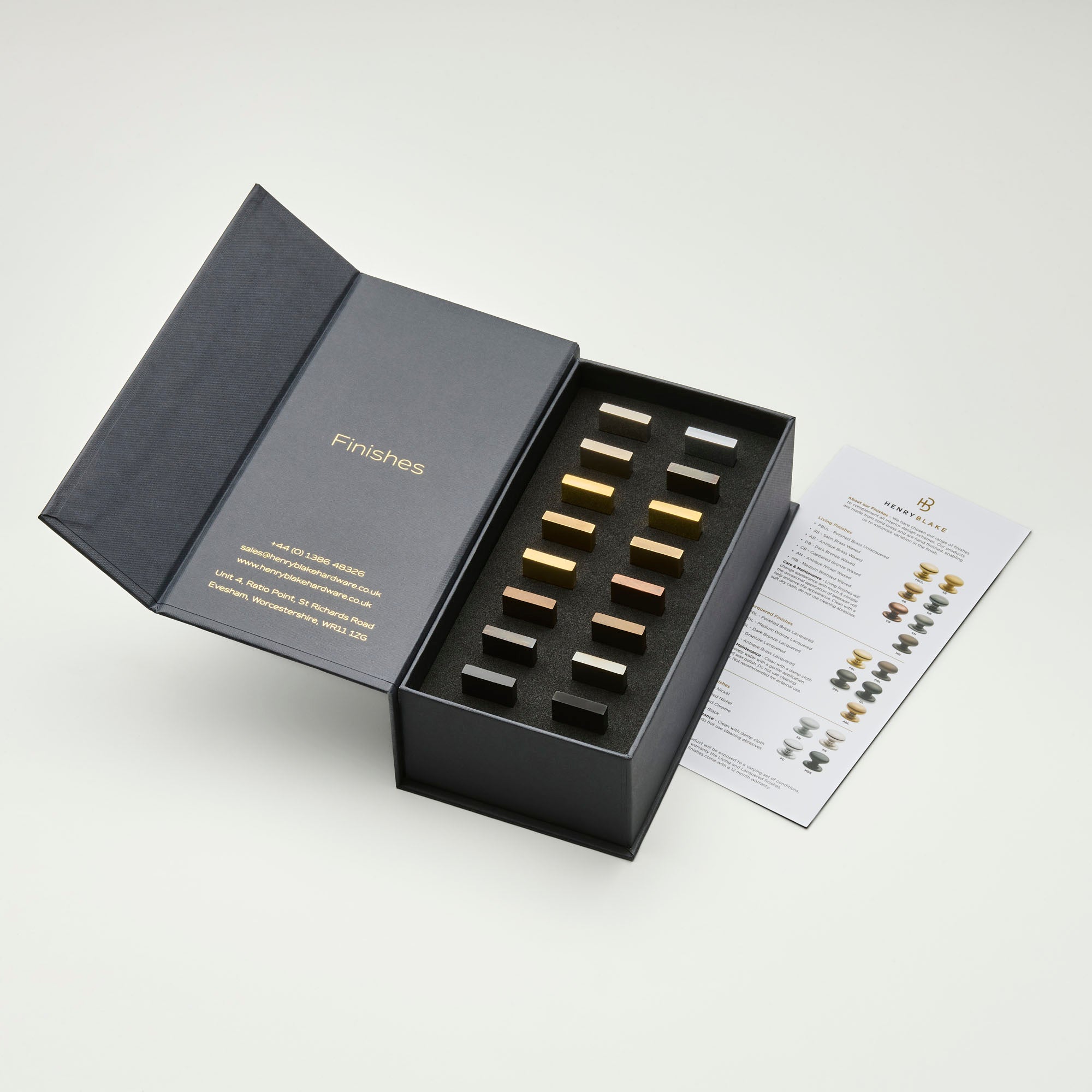 Each set contains our full range of finish samples, in a beautiful box to keep them safe and secure.